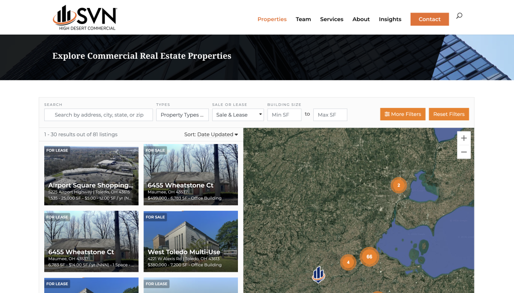 - Custom commercial real estate website